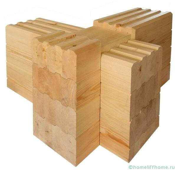 - Най-добрият вариант е профилиран лъч. От едната страна има канали, а от другата са разположени шипове. Други повърхности са рендосани. Използването на този материал ви позволява да спестите от носещи конструкции, тъй като той също е материал за стени.