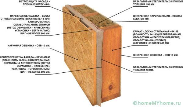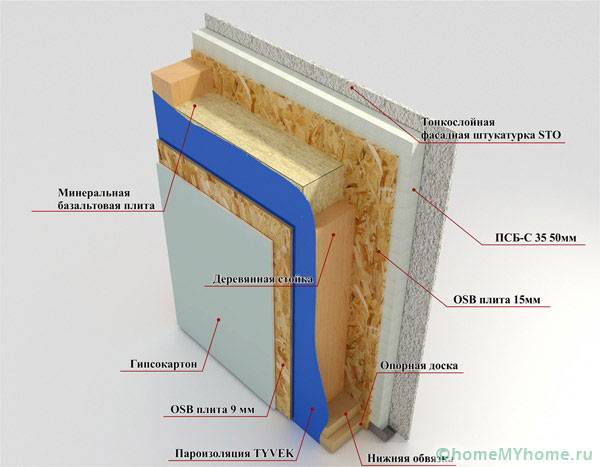Всъщност едно от предимствата на рамковата конструкция са енергоспестяващите свойства на стените. Те се осигуряват от висококачествен слой изолация, който се намира между стълбовете. Допълнителна изолация се извършва и от външната страна.