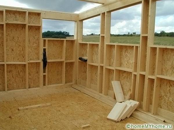 Рамкова конструкция е конструкция, основана на рамка, изработена от дървени греди и подове. В пространството между плочите е вградена минерална баня или експандиран полистирол. Облицовката на рамкови конструкции е направена от всякакви материали.