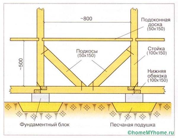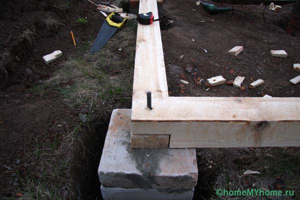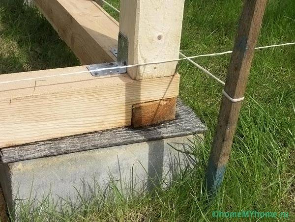 O segundo método envolve a colocação de postes de madeira diretamente em cada pilar da fundação entre os lintéis de base.