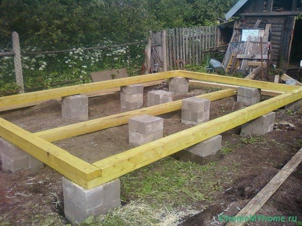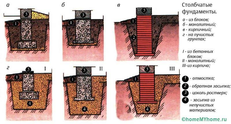 Ele cava buracos de acordo com as marcações, no fundo de cada um deles fazemos uma base arenosa. É altamente recomendável compactar a areia antes do assentamento para evitar precipitações excessivas. Colocamos blocos de concreto ou tijolos no fundo, enchemos com cascalho, socamos e voltamos a encher com terra. Todos os blocos devem ser definidos estritamente em nível.