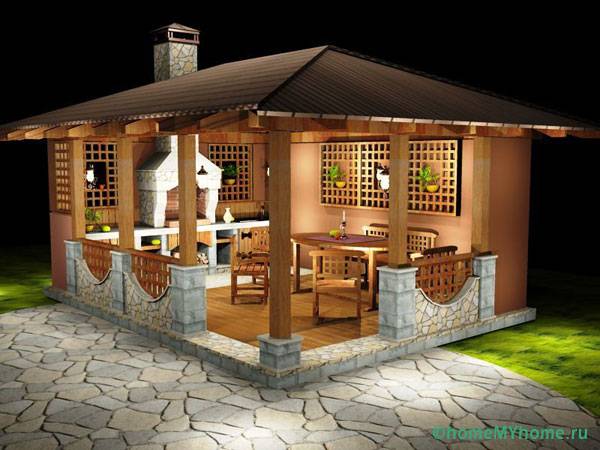 Gazebos com churrasqueira e forno. Tudo sobre as opções para o dispositivo do fogão ou churrasco no gazebo e características de uso em uma publicação especial de nosso portal.