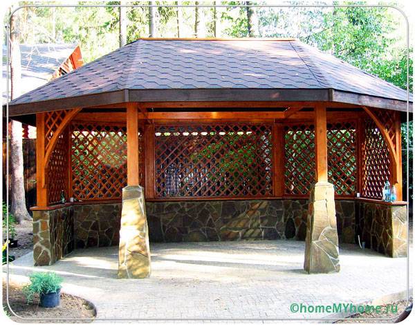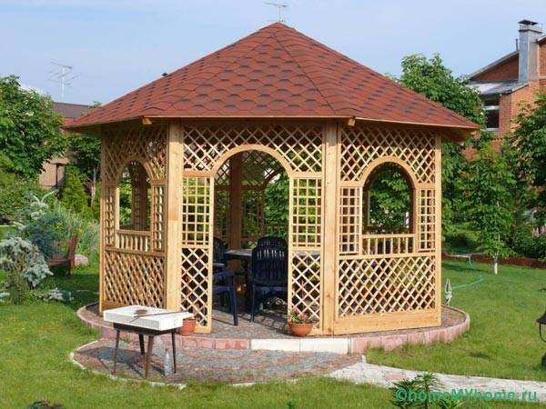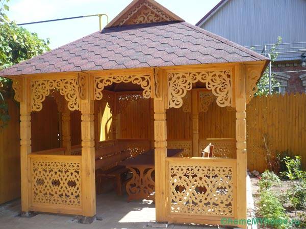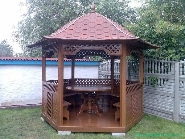 Apesar do fato de que a madeira como material para um gazebo tem uma série de desvantagens (por exemplo, apodrece quando exposta à umidade, pode não ser durável o suficiente, está sujeita aos efeitos negativos dos cupins), é o melhor material para construir um gazebo.que não tem alternativa.