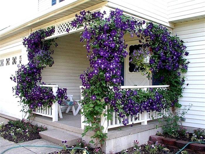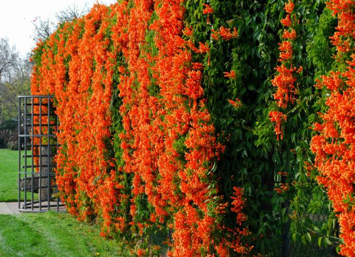 Muitos anuários decorativos também crescem rapidamente e podem ser usados para decorar cercas. As plantas perenes populares incluem o lúpulo, que cresce rapidamente no verão. Também dignas de nota são a madressilva e a clematis. Para prestar um atendimento de qualidade, eles devem ser amarrados, pois os brotos crescem muito rapidamente.