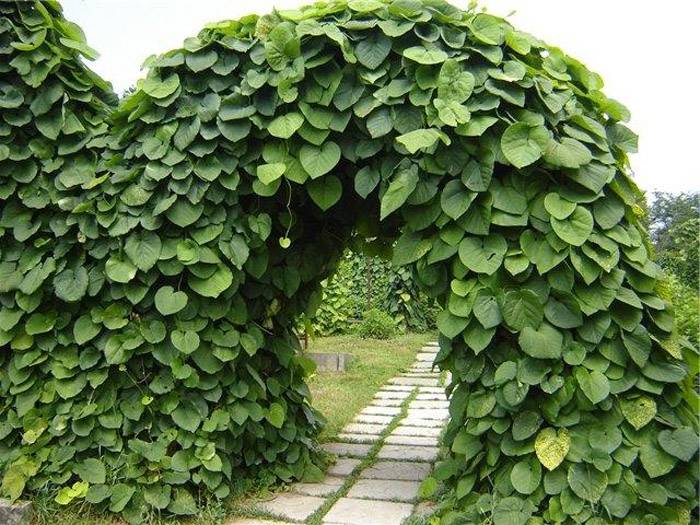 Para plantar pérgulas ou gazebos enormes, o caruncho é adequado. Não deve ser plantado perto de outras culturas de árvores. Mas para um gazebo, torções intrincadas no sentido anti-horário serão úteis.