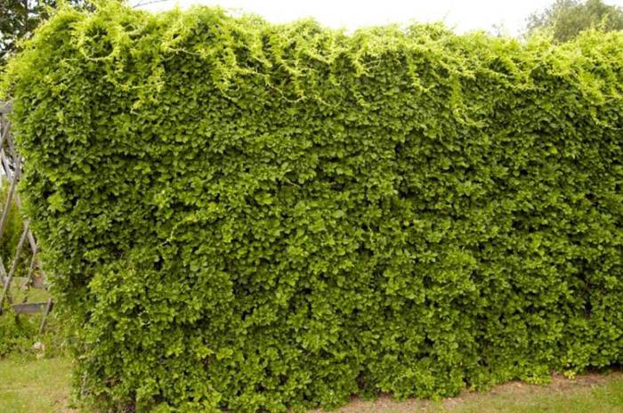 Nota! A versão moldada das sebes não floresce, pois os rebentos são podados durante a formação. Para tal espaço verde, é necessária alimentação adicional e a poda deve ser realizada duas vezes por ano.