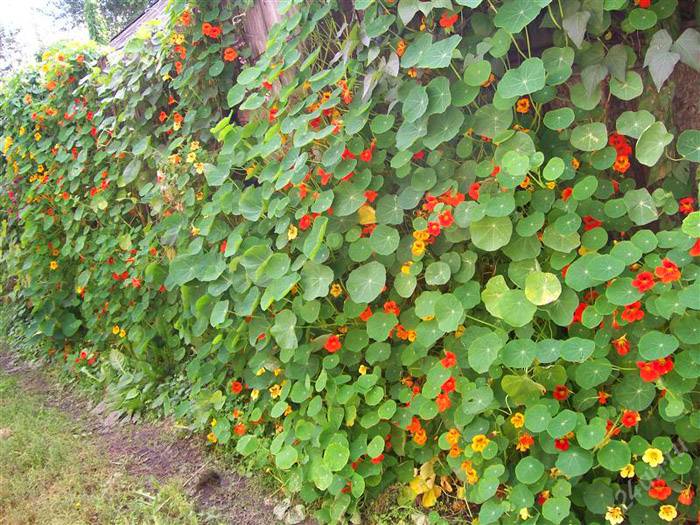 Você pode tentar usar capuchinha para decoração. O plantio e o cuidado estão disponíveis até mesmo para jardineiros novatos. Os caules das plantas podem ter até dois metros de comprimento. O período de floração da cultura também vai deliciar, vai de junho a agosto. Quase qualquer solo é adequado para uma planta. Não abuse da fertilização orgânica e forneça luz suficiente às vinhas.