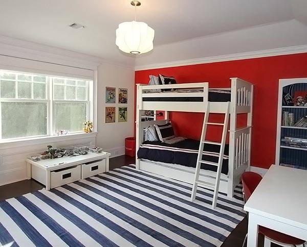 - Vermelho + azul. Você terá um interior colorido, que deve ser complementado com móveis de tons pastéis sólidos;