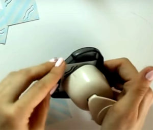 Com as mãos arrancamos o pedaço de guardanapo desejado, aplicamos no local a ser decorado e dispersamos suavemente a cola PVA ao longo do corte com um pincel.