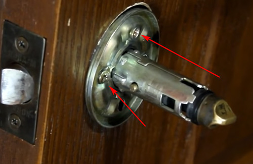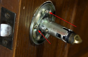 Em uma nota! Se a manivela estiver solta, este é um dos sinais de uma avaria iminente. Portanto, é necessário apertar todos os parafusos existentes. Para acessá-los, você deve remover o anel final na maçaneta da porta redonda.