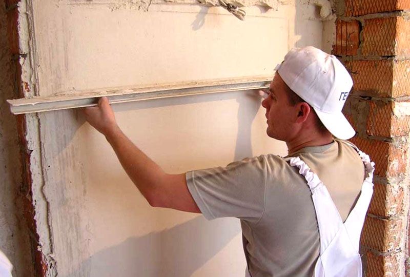 Quando você extrair o nível necessário da superfície com a ajuda de um fio esticado, instale faróis. Eles são feitos da mesma mistura de massa e aplicados na parede.