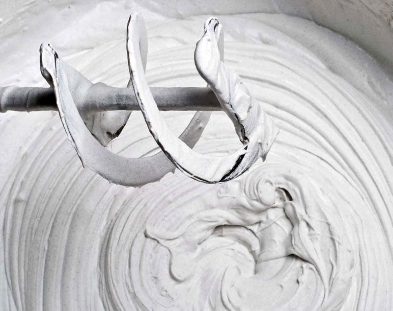 Use água à temperatura ambiente para misturar. Depois de preparada a massa, deixe repousar um quarto de hora. A consistência da massa pronta deve ser semelhante a creme azedo espesso. Se você preparou uma mistura de polímero, acrílico ou látex e não teve tempo de aproveitá-la totalmente, encha o recipiente com a massa com água. Da próxima vez, drene cuidadosamente a camada superficial de água e use o composto.