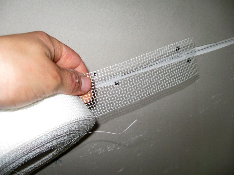 Para evitar que a massa caia nas juntas das placas, elas são cobertas com uma fita serpyanka e a mistura é aplicada por cima.