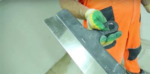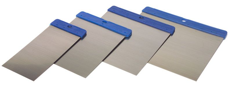 A parte metálica da ferramenta deve ser de aço inoxidável. Qualquer outra opção não é adequada, pois o contato com a água enferruja rapidamente e deixa marcas na superfície tratada. À venda você encontra espátulas de plástico durável, mas são muito mais caras que as de metal.