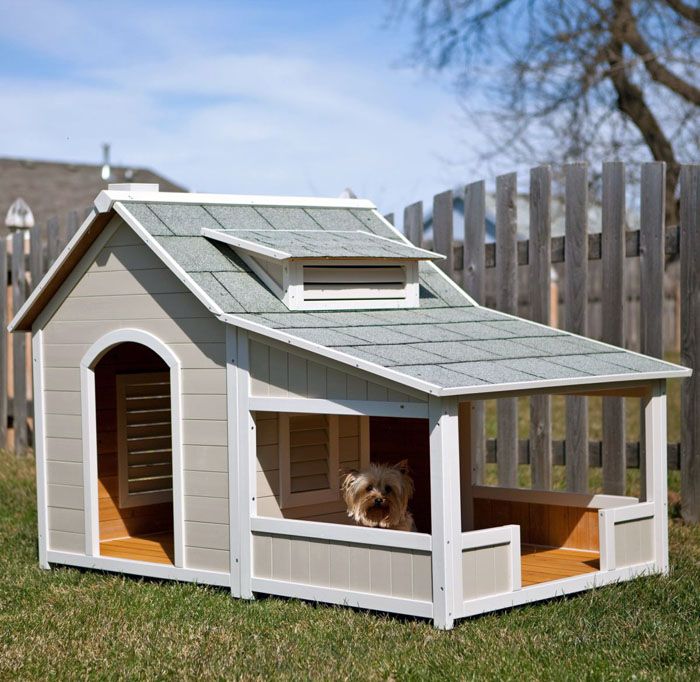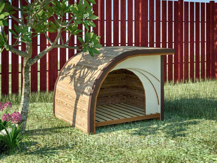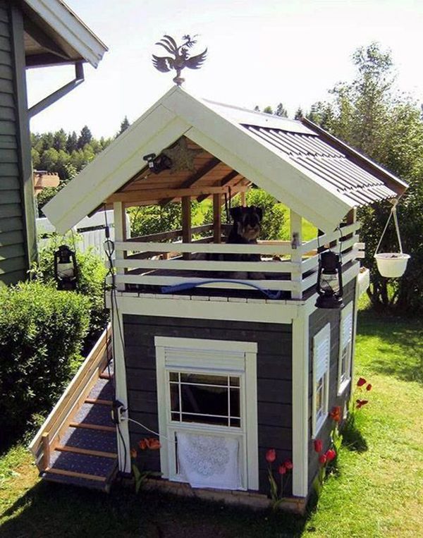 A varanda esconde o cachorro da chuva e da neve, mas não o protege do vento. Embora se os edifícios vizinhos desempenham uma função à prova de vento, faz sentido colocar tanta beleza no quintal