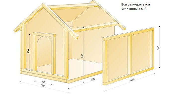 Ao projetar um canil, as dimensões do animal são calculadas a partir dos vestíbulos: será conveniente para raças pequenas em uma sala de 75 cm de comprimento, 65 cm de largura, 65 cm de altura, mas um cão pastor apreciará 120-125 cm de comprimento. Animais muito grandes precisam de um comprimento de sala de 145 cm, uma largura de 105 cm e uma altura de 100 cm.