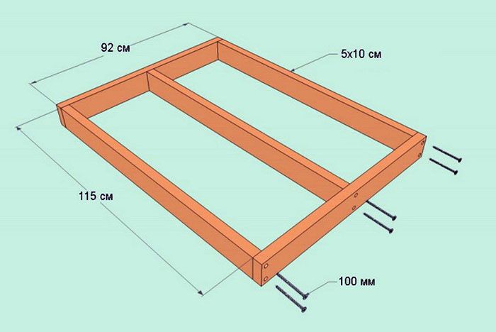 Uma folha de madeira compensada é colocada na moldura. Quando o fundo está pronto, é virado para que, por outro lado, se coloque espuma plástica no espaço do fundo para o isolamento, que é coberto com compensado.