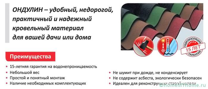 Ondulin é usado por muitos construtores por causa de sua aparência atraente e a capacidade de realizar trabalhos de instalação por conta própria
