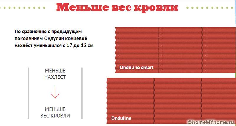 Ondulin smart tem um tamanho um pouco menor, mas a área utilizada não é menor. Já a instalação sobreposta é feita com uma cobertura de espaço de 50 mm a menos do que com o material padrão. Junto com o ondulin, vale a pena comprar pregos especiais, vale, crista e outros detalhes.