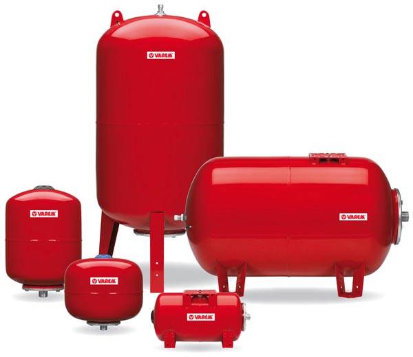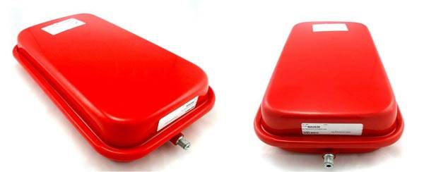 Como estamos falando apenas de um sistema do tipo fechado, falaremos sobre os tanques de expansão que removem o excesso de pressão. Em primeiro lugar, gostaria de observar que você pode encontrar uma variedade de tamanhos e tipos nas prateleiras das lojas. Para o sistema de aquecimento, apenas os vermelhos podem ser usados, uma vez que são projetados para altas temperaturas. Os tanques de expansão são classificados pelo tipo de membrana incluída em sua composição. Ela pode ser: