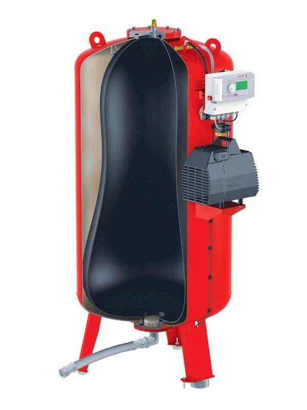 O primeiro tipo é caracterizado pela presença de uma membrana embutida, que divide o tanque em 2 partes e o pressiona contra a parede pela pressão do ar injetado. Quando a água do sistema esquenta, seu volume aumentado, ou seja, seu excesso vai para o tanque, enquanto a membrana é empurrada para trás e comprime o ar que está na outra parte da membrana. Quando a água do tanque esfria, ela é enviada de volta ao sistema.Este tipo é muito confiável, mas apenas na condição de que a pressão no tanque de expansão de um aquecimento do tipo fechado esteja controlada, ou seja, a presença de ar no mesmo.