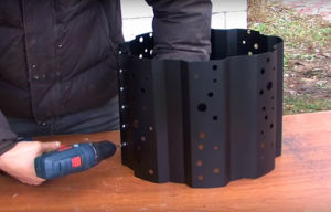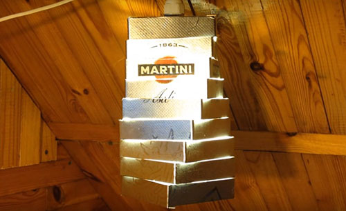 Como você pode ver, o design é extremamente simples e sua montagem dificilmente levará mais de meia hora. Dependendo do tamanho do recipiente, o resultado pode ser um pouco diferente: em alguns casos, não uma, mas duas ou três lâmpadas podem caber no abajur.