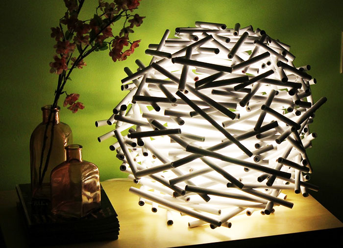 - 3 Candeeiro de parede feito de um pedaço de tubo de plástico