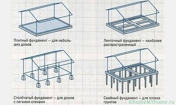 Dependendo das condições geológicas, a laje é mais conveniente no nível do lençol freático alto, a fita no nível do lençol freático baixo. As estacas são uma base universal, podem ser montadas em pântanos, solos de subsidência. Os postes para varandas não são recomendados, pois sem o isolamento das estruturas subterrâneas a probabilidade de tombamento em solos volumosos é muito elevada.