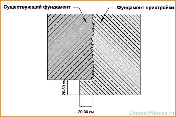 Placa comum, fita MZLF ou rígida gaiolas de reforço de ligação essas estruturas são permitidas apenas em solos não porosos (cascalho, areia grossa, solo de granulação grossa). Em todos os outros casos (argila, areia siltosa, argila arenosa), é melhor separar as fundações com uma costura tecnológica.