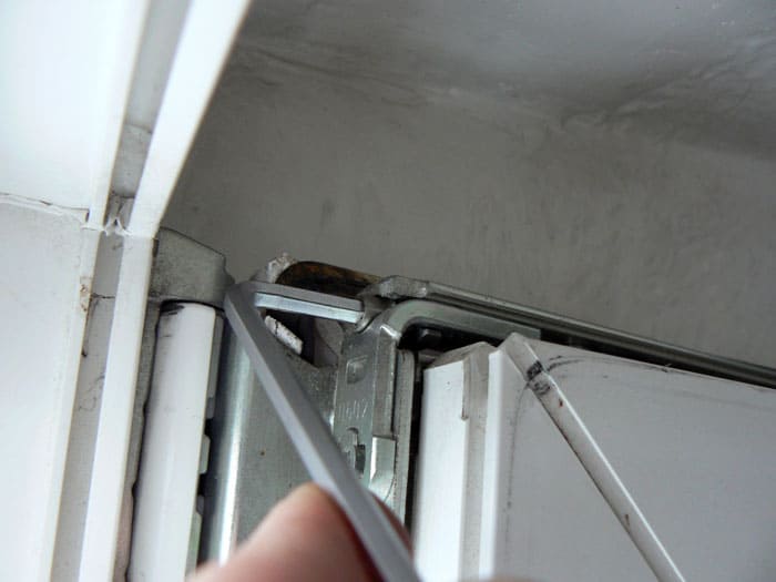 Ако духането през люлеещото се крило се усеща от страната на шарнира, първо трябва да се отстрани облицовката. След това трябва да разгледате формата на регулиращия винт, разположен по-долу. След това трябва да вземете отвертка и, като държите крилото отдолу с една ръка, регулирайте затягащия механизъм надясно или наляво.