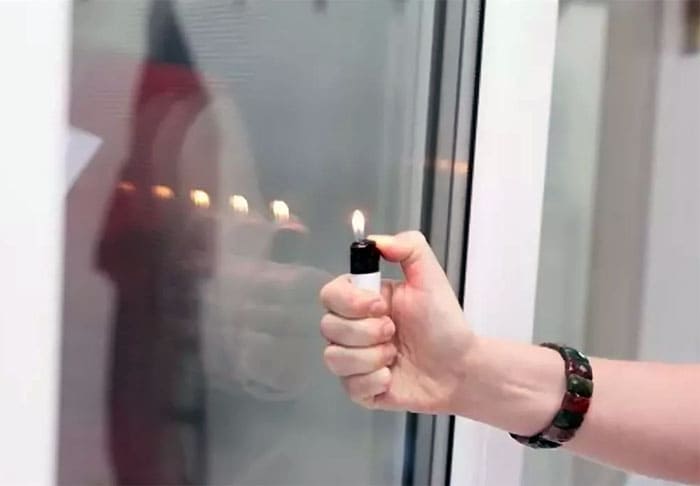 Ако има чувството, че крилата не са плътно притиснати и духа от прозореца, и можете да проверите това със свещ, запалка или кибрит, като ги носите по периметъра на рамката. Където ще се наблюдава отклонението на светлината, това означава, че там са необходими ремонти, които можете да направите със собствените си ръце.