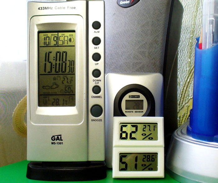 Pe lângă temperatură, specializat senzoricare vă permit să controlați nivelul de umiditate din cameră și în aer liber. Desigur, această versiune este o unitate electronică specială pentru prelucrarea unor astfel de date suplimentare.