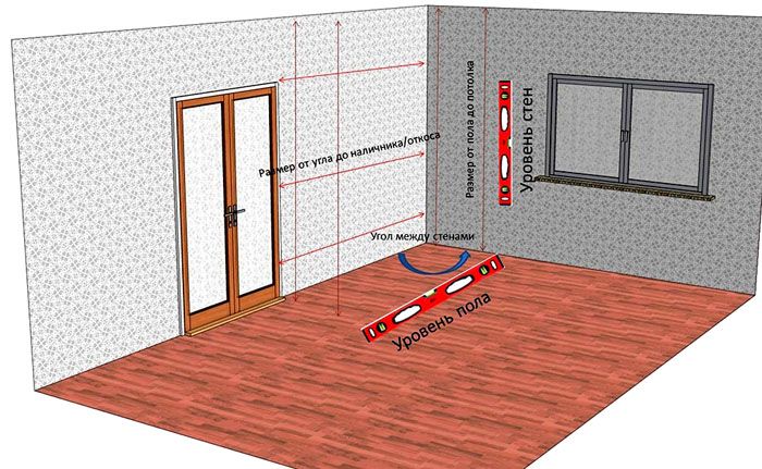 Este mult mai dificil să intri cu precizie într-un dulap încorporat. Cu propriile mâini, trebuie să faceți cel puțin trei măsurători pentru fiecare metru de lungime (înălțime). Dacă se constată defecte excesive, suprafețele trebuie nivelate în prealabil.