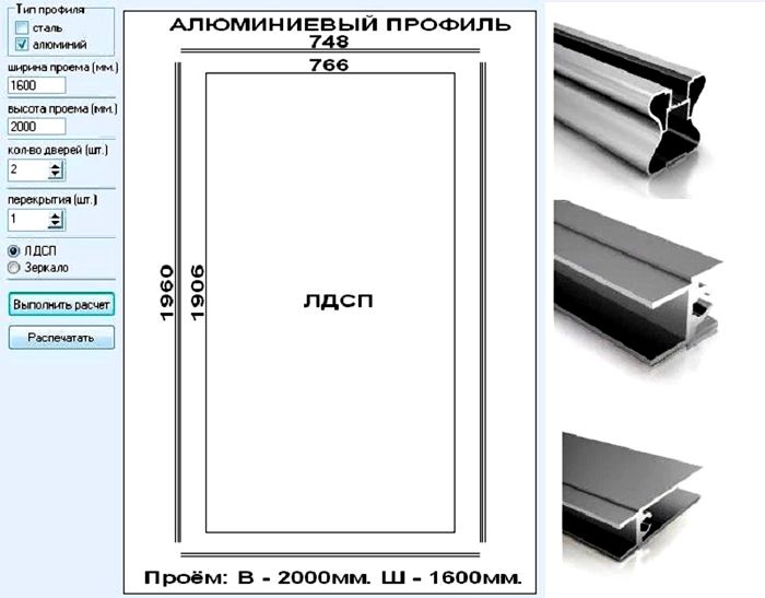 Pentru calcularea ușilor compartimentului, „Aristo” și alți producători de profiluri oferă calculatoare similare