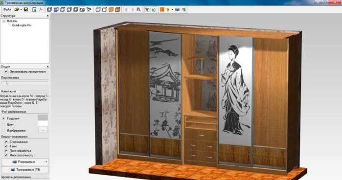 Puteți realiza un model electronic al unui dulap cu ușă glisantă cu propriile mâini folosind programul Basis Furniture Maker