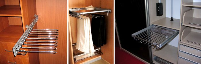 Pentru echiparea mobilierului, producătorii moderni oferă suporturi pentru pantaloni, mecanisme de ridicare și alte completări funcționale