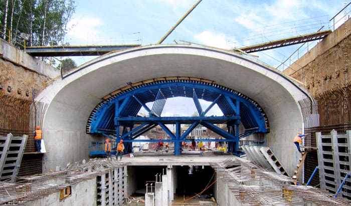 - Rulare. Principiul de funcționare al cofrajelor rulante este similar cu cofrajul glisant. Diferența este că mișcarea nu se face pe verticală, ci pe orizontală. De regulă, este utilizat la betonarea pereților tunelurilor și a altor structuri cu o lungime semnificativă. În construcțiile rezidențiale, varietatea de rulare este uneori folosită atunci când se toarnă fundații cu benzi puțin adânci pe soluri stâncoase.