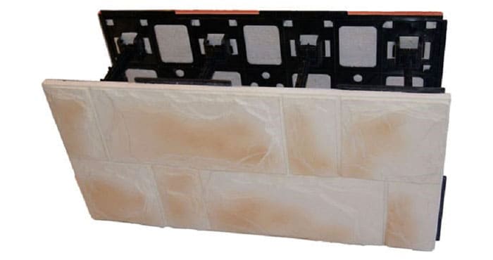 Pentru izolarea și placarea decorativă se folosesc așa-numitele blocuri tehnice. Sunt un material compozit format din mai multe straturi. Partea interioară este realizată din spumă, apoi elementul de susținere (opțional), peretele exterior este un material de finisare. De regulă, piatra artificială (panouri din beton armat cu fibre) care imită naturale este utilizată ca decor.