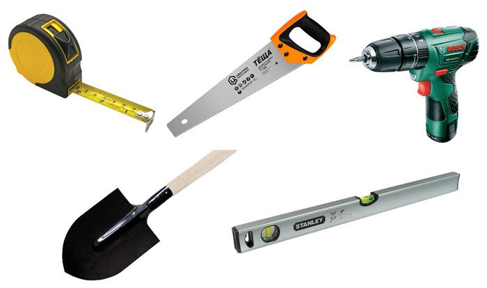 - Pentru lucrările de excavare, veți avea nevoie de o baionetă și o lopată. În cazul în care site-ul este stâncos, o rangă și un târnăcop vor fi la îndemână. Căruciorul este necesar pentru mutarea mărfurilor vrac.