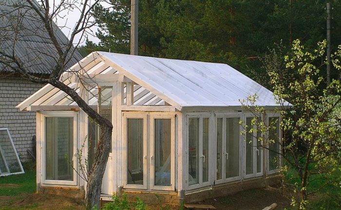 Instalarea ferestrelor moderne cu geam termopan este fezabilă din punct de vedere economic. Reduce consumul de energie pentru menținerea condițiilor de temperatură confortabile. Dar nu te grăbi să arunci vechile tale rame din lemn. Sunt potrivite pentru construirea unei sere de înaltă calitate din materiale reziduale cu propriile mâini. Ca și în exemplul anterior, dimensiunile standard ale produselor originale simplifică mult asamblarea unei noi structuri.