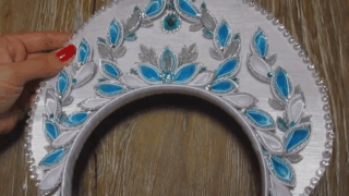 Кокошникът е готов. Може допълнително да бъде украсена със кристали или полу-мъниста. Те обикновено се закрепват с лепило за горещо стопяване. След като работата по шапката приключи, трябва да прикрепите ластика между двата вътрешни ръба. С помощта на него продуктът ще се държи на главата.