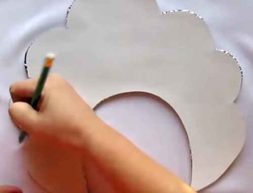 - Вземете обичайната гладка, без украса рамка. Разгъваме го внимателно, за да не го счупим, кръжим го от всички страни върху бял лист хартия. Оставяме запаси от всички страни.