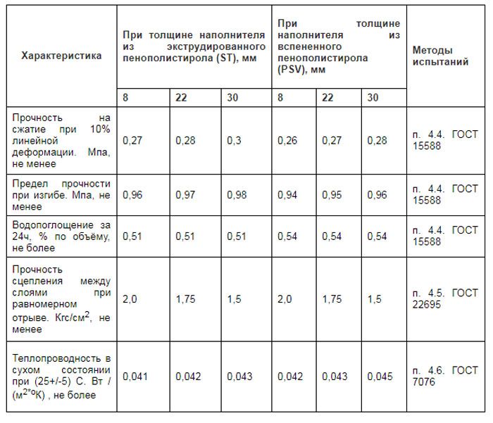 - Силата на продукта зависи от дебелината на материала, използван за външната и вътрешната облицовка на панела, следователно това е параметърът, който определя надеждността на монтираната конструкция.