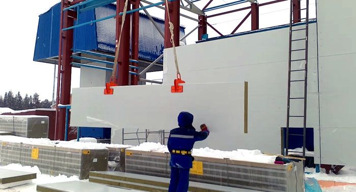 Монтажът на сандвич панели може да се извърши с помощта на строително оборудване или без него, което зависи от обема на строителството и етажа на изгражданото съоръжение