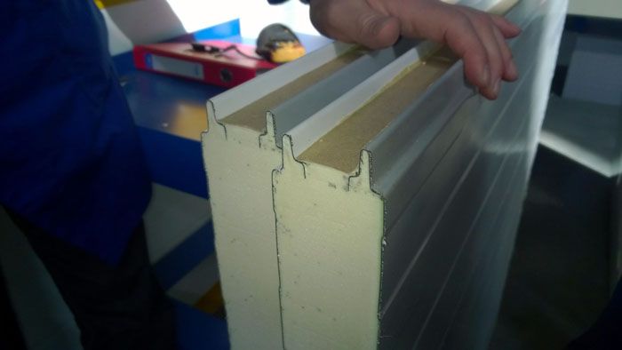 - ако е необходимо, изрежете сандвич панела, първоначално изрежете металната облицовка и след това изолацията;