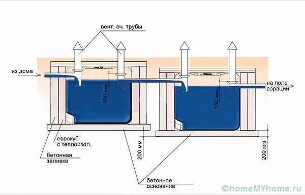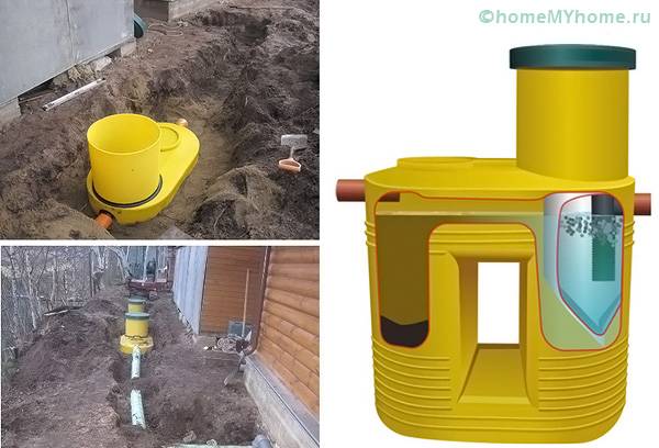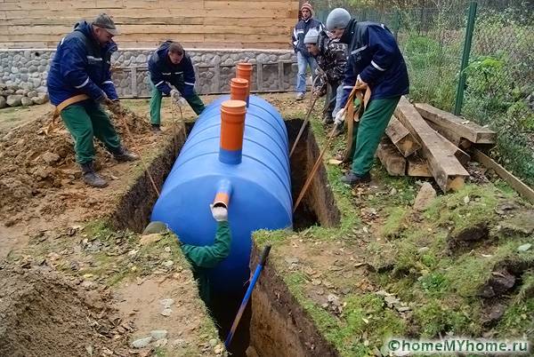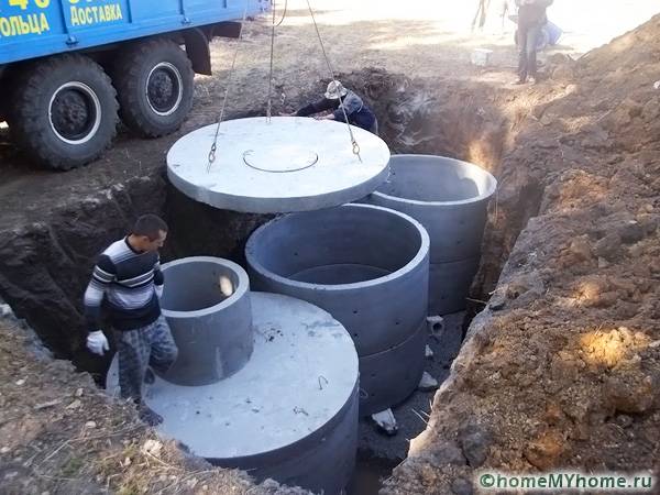 Инсталирането на такава конструкция е трудоемко. В същото време се изкопава яма и в нея се поставят всички необходими контейнери.