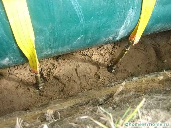 Тъй като подпочвените води могат да изтласкат пречистващата структура нагоре, септичната яма трябва да бъде добре фиксирана. В този случай се прави бетонна възглавница и след това към нея се прикрепва контейнер.