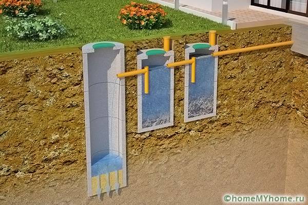 Полезна информация! За зона с близко преминаване на подпочвени води се използва оборудване с три камери. Първото почистване ще се извърши в първия резервоар, а в останалите два ще се извърши допълнително третиране.