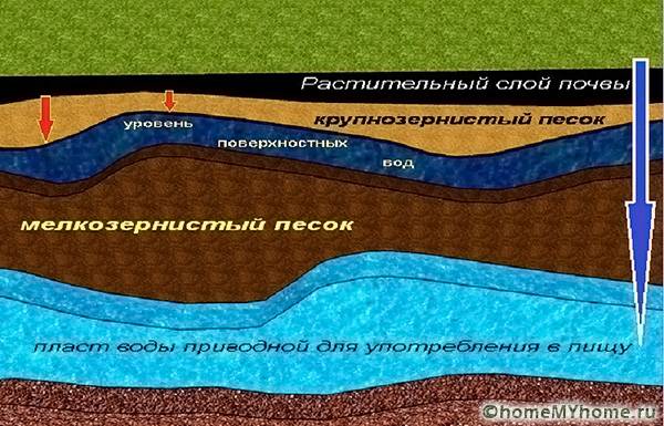 С високо присъствие на подпочвени води, той се вписва дренажна тръба, а пясъкът се изсипва на дъното. Отгоре трябва да се монтира бетонна плоча.