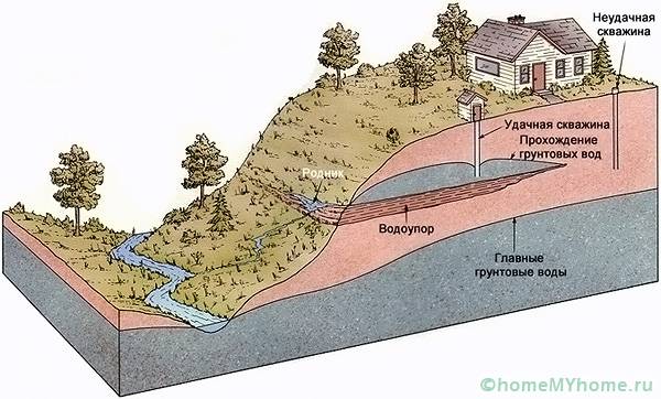 Възможно е да се изчисли местоположението на подземните течения на територията през пролетта, когато снегът се топи или след продължителни дъждове през есента.